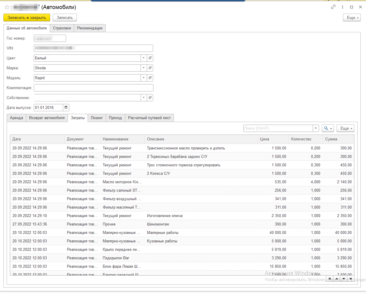 Вести учет в разрезе каждой единицы ТС, что позволит контролировать текущее состояние ТС с детальной историей сдачи в аренду, возврата в пункт выдачи, а так же всех сопутствующих расходов (страховые премии, ремонт, профилактические осмотры, штрафы и прочее)